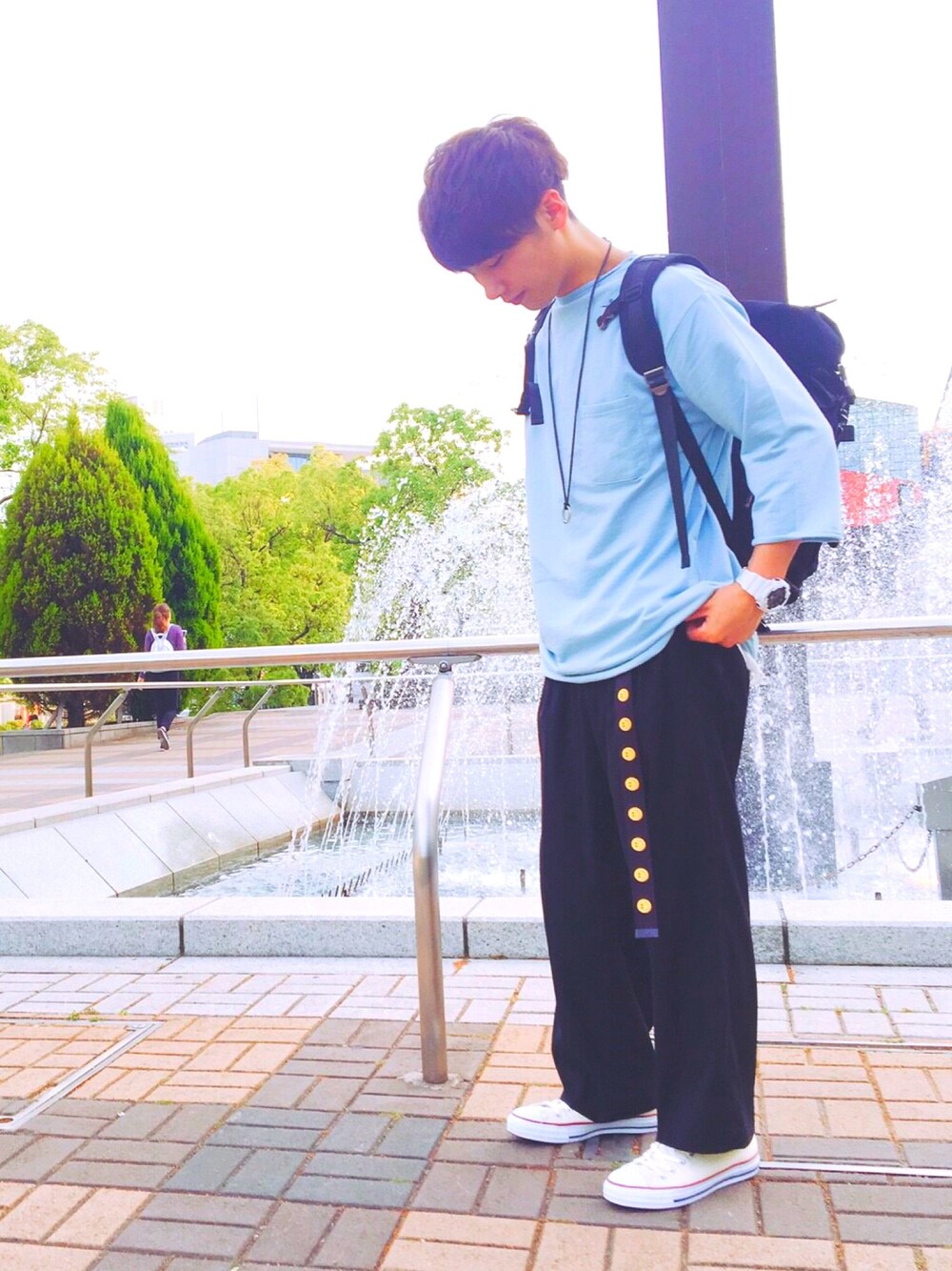 初投稿✨✨ もう季節は春ですね🌸 春っていっても気温は初夏並み💧 今回のコーデはそんな日でも過ごしやすい服装にしてみました!! 自分のお気に入りは淡いブルーのトップスと ニコちゃんのガチャベルト✨✨ まぁ流行りを詰め込んだ感じですねw いいね、コメント待ってますね〜