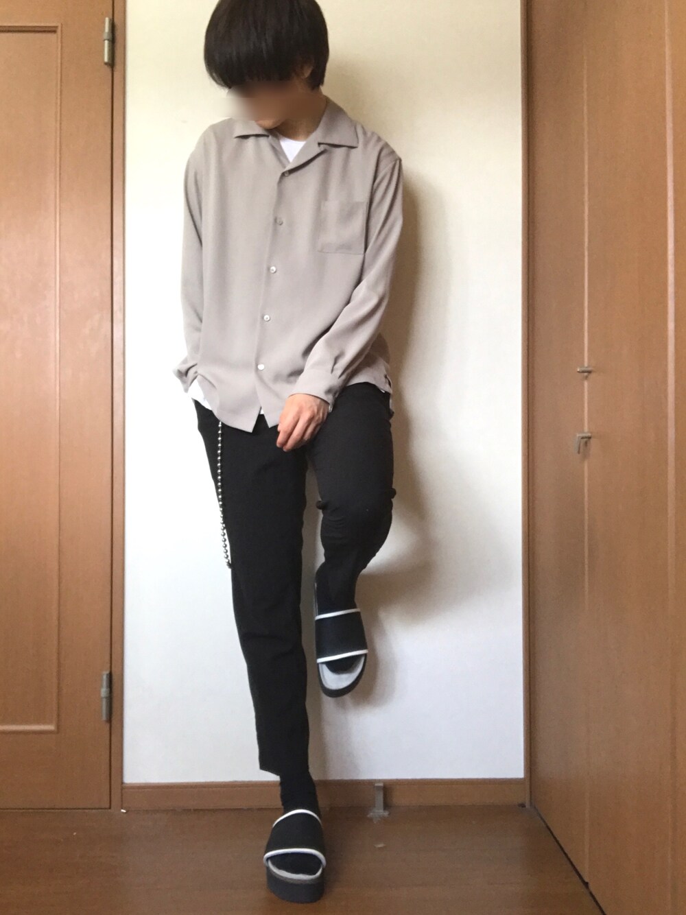 シルエットの綺麗さを意識してみました✨ オープンカラーシャツとサンダルの組み合わせが良き!