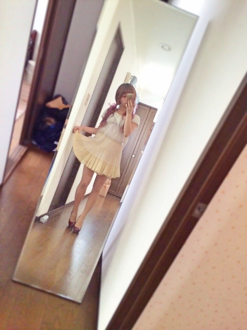 春ですね〜〜浮かれた花のようないでたち。 髪まわりと足下で差し色を🌺 フリルやオーガンジーをふんだんに詰め込んで、繊細ながらも軽く明るいスタイルに! あんよはシンプルにしめますた。 まゆ上ピンクのオーガンジー。
