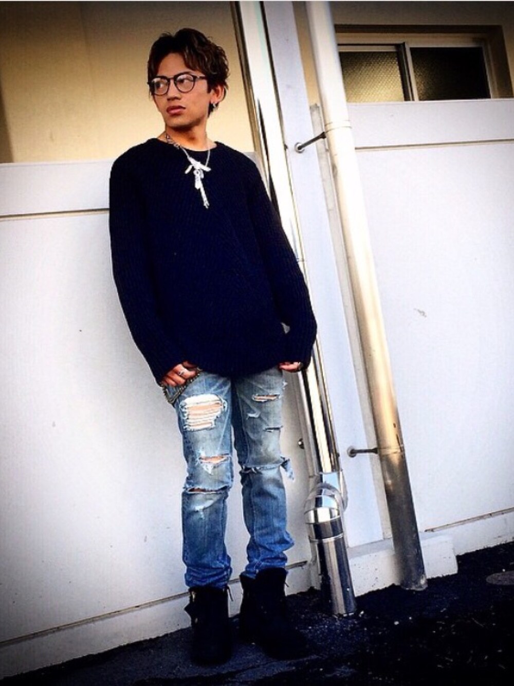 秋のニットコーデ。 このくらいゆったりしたニットが 好みです(´∇`) デニムは古着屋で買ったものを 自分でダメージ加工。 ニット→Bershka デニム→Lee(古着リメイク) ブーツ→Timberland