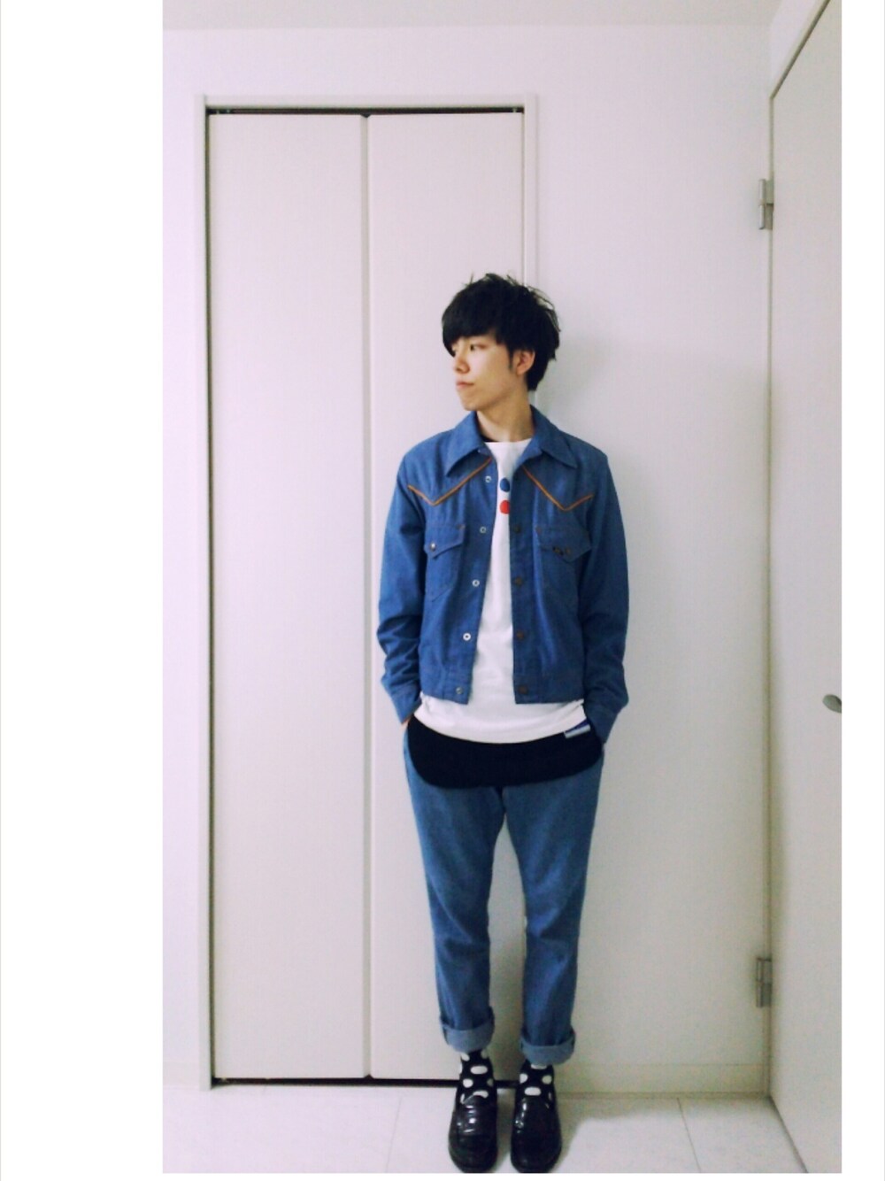 今日はいつもと違う感じで! そして初めてのデニムonデニム! アウターはリーバイスの古着♪