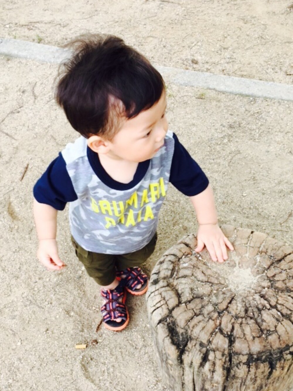 カモフラ×カーゴパンツでミリタリーコーデ* 遊具のある公園へ。 一緒にすべり台すべったら 滑りが良すぎて2人で尻餅*\(^o^)/* イタタ…でした 笑