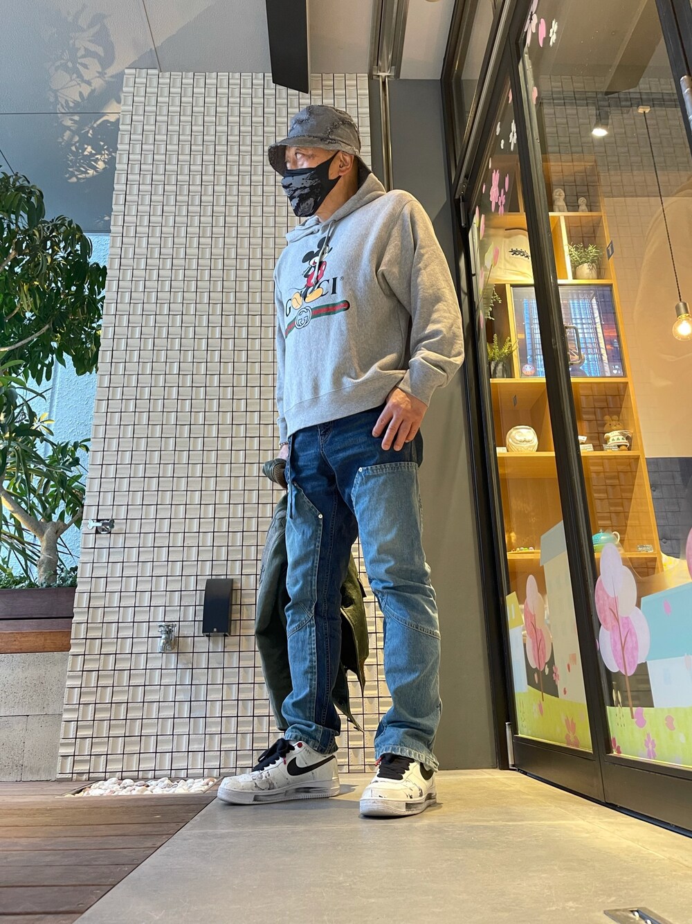 GUCCIとディズニーとのコラボのフーディーとsacaiのデニムとNIKEとG-Dragonとのコラボのエアマックス。ちょっと今日はかなりカジュアル。