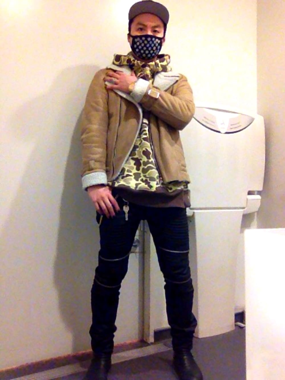 backside of tokyoの渋谷パーカーに、キャップとマスクを合わせました(^ー^)ノ渋谷ブランドをストリートに
