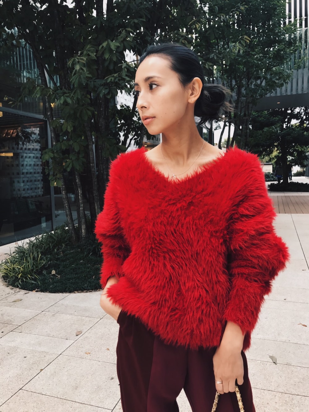 黒石奈央子のニット/セーター「V NECK SHAGGY KNIT」を使ったコーディネート