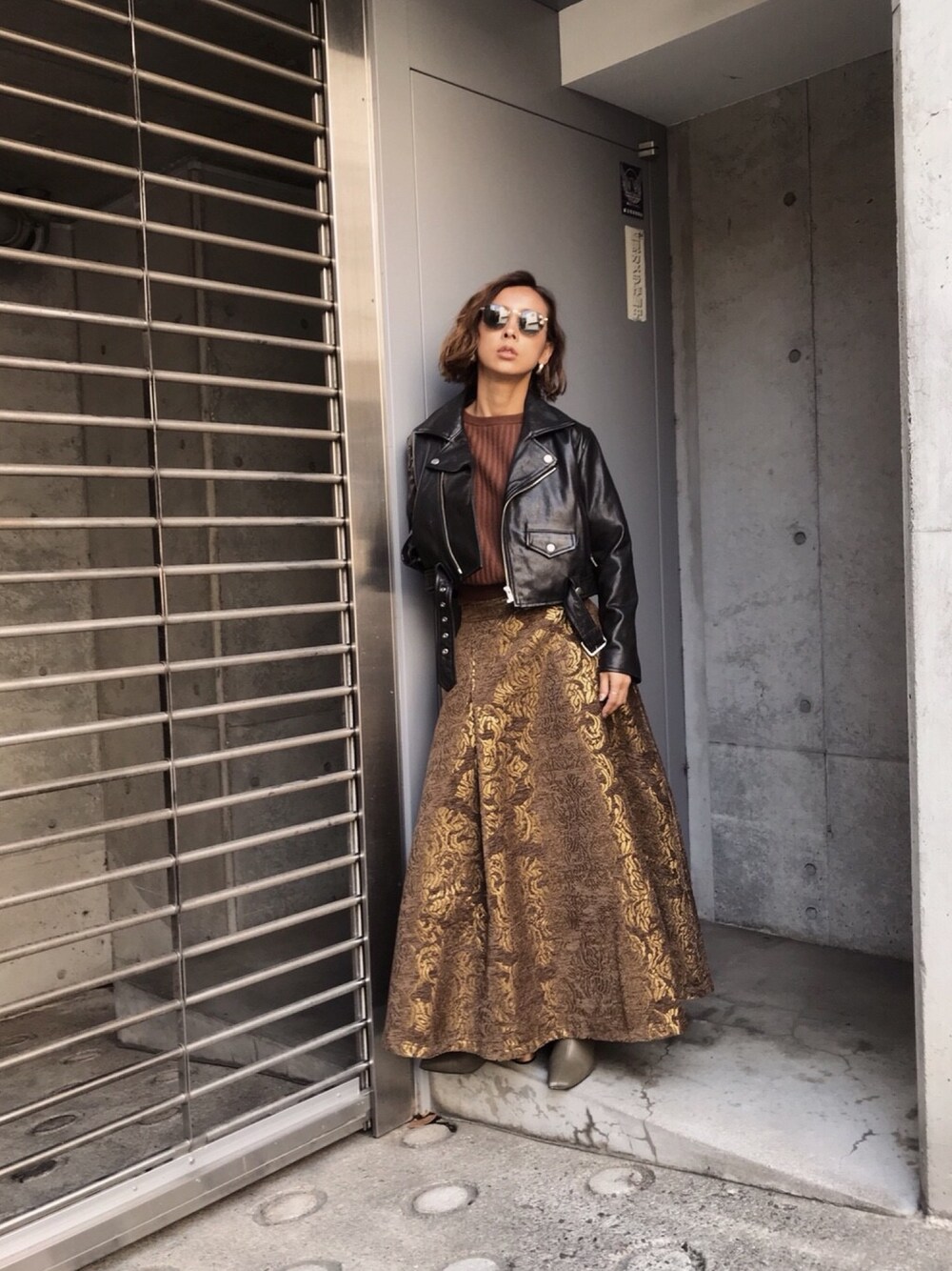 黒石奈央子のライダースジャケット「LACE UP RIDERS JK」を使ったコーディネート