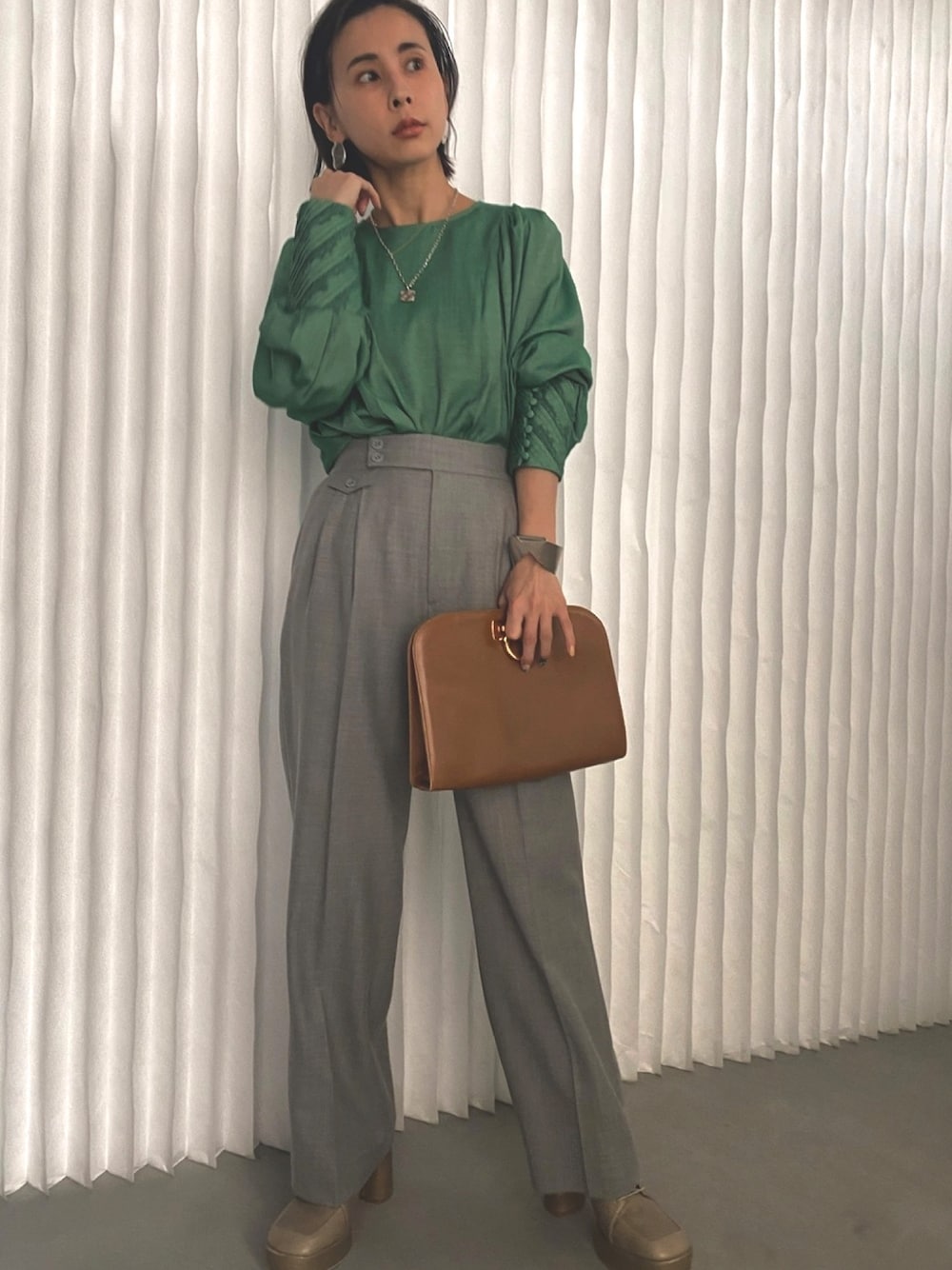 カフスのレースデザインに拘ったオフィスコーデにもおすすめブラウス◎ どんなコーデにもフィットするこのバングルもオススメです!!