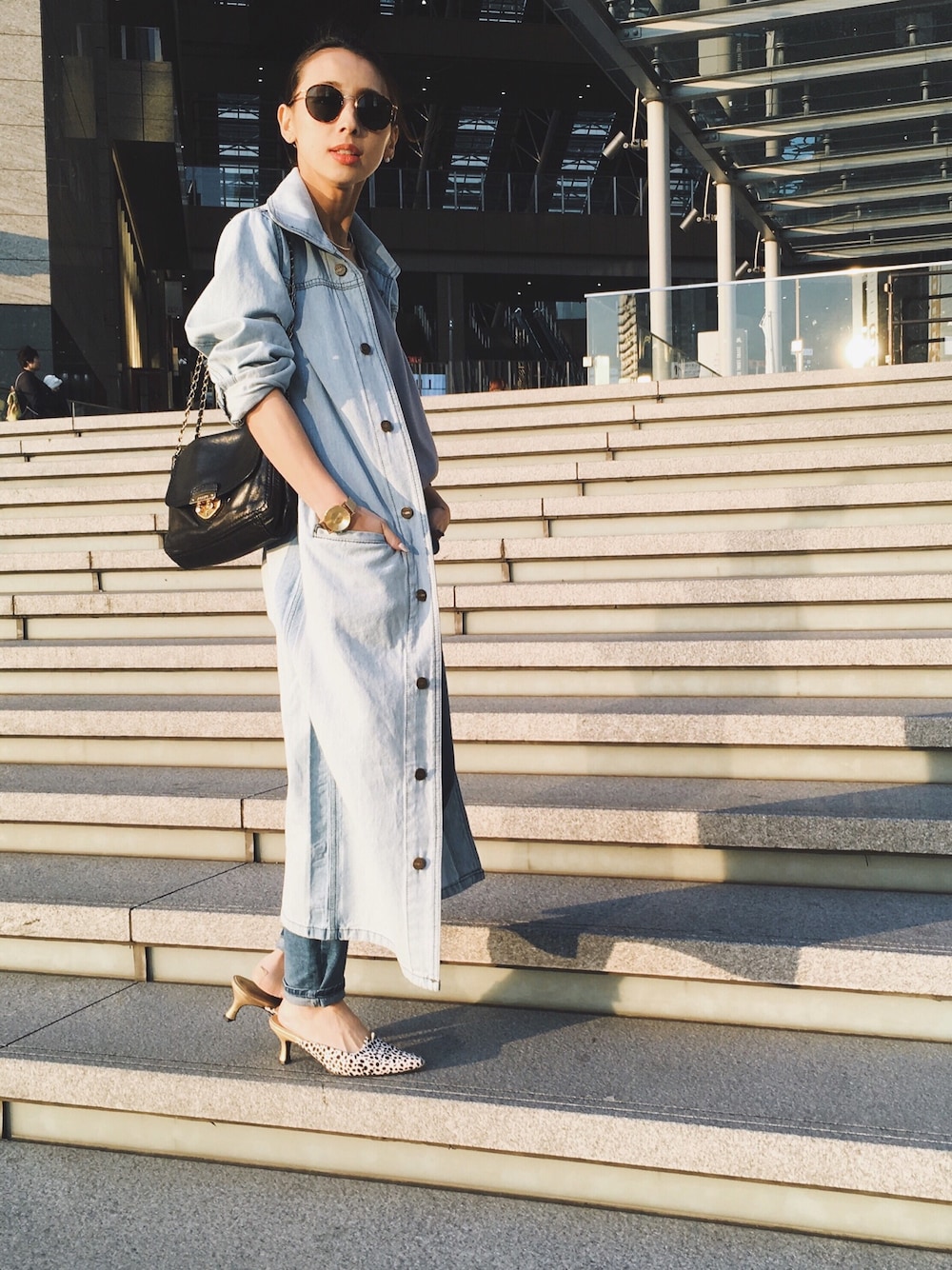 黒石奈央子のデニムジャケット「ALEXA DENIM LONG COAT」を使ったコーディネート