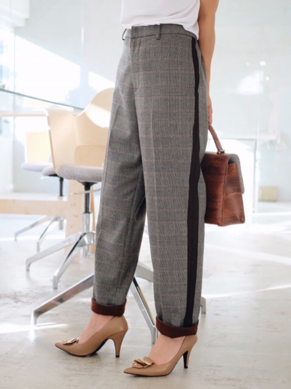 チェックベースの生地のサイドにラインが入ったパンツ 形もかなり綺麗でお気に入り! 詳細はブログにて