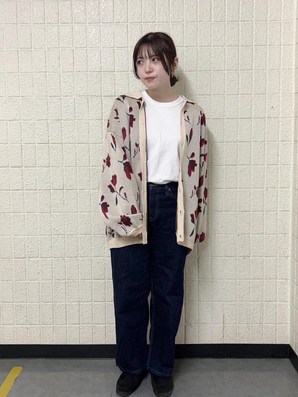 クラシックフラワールーズカーデを着用しました! ヴィンテージ感のある花柄がとにかく可愛く、秋冬のメインに大活躍間違いなしです