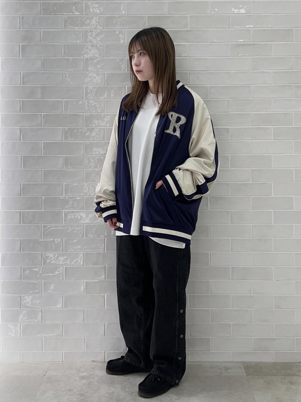 re_k by JUNRedのスカジャンとデニムを着用しました! オーバーサイズすぎないスカジャンで、今っぽく綺麗に着用できます。 ギラギラ感の無い程よく光沢のある生地で、強めな印象のスカジャンでも軽やかに見えます! 白Tと合わせてより軽く◎ 着心地も軽いので、春と秋のほんのり肌寒いころに大活躍してくれます! ※商品カラーはECページをご覧下さい。
