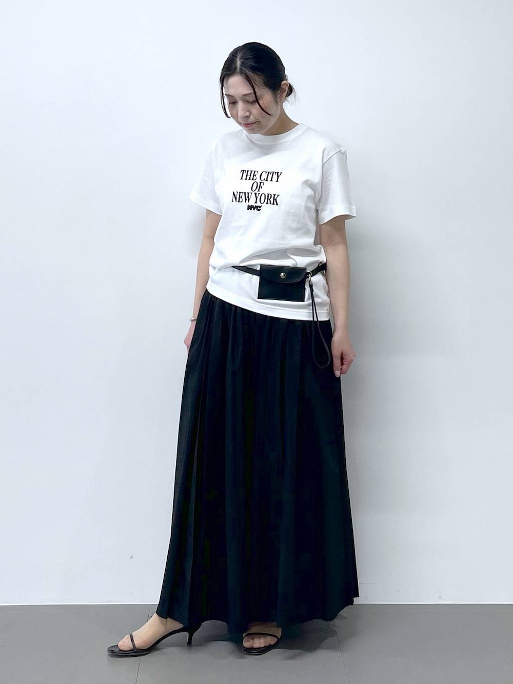 〈身長157cm 骨格ストレート〉 ⭐各アイテムのおすすめポイント  ̄ ̄ ̄ ̄ ̄ ̄ ̄ ̄ ̄ ̄ ̄ ̄ ̄ ̄ ̄ ̄ ̄ 【トップス】 【GOOD ROCK SPEED】NYC Tee シンプル&ベーシックなロゴTシャツ。 ロゴ部分はプリントではなく刺繍なので、 大人っぽく着ていただけます! 無地だと物足りないスタイリングのときも、 ロゴが入るだけで印象が変わります丸っこい どんなボトムスとも合わせていただける、 一枚持っておきたいアイテムです! 【ボトムス】 タフタボリュームスカート 身長157cmでもきれいに履けるスカート! 個人的にとても嬉しいアイテムです😌 ボリュームのあるスカートながら、横にはあまり広がりません。 骨格ストレートさんにもおすすめです。 ウエストには紐が入っており、 ご自身のウエストサイズに合わせて調整可能。 スカートのボリュームがお腹まわりをカバーしてくれ、 お腹が出ている私でもトップスをインできます✨ フリーサイズ着用。 フラットサンダルでも裾が床に付きませんでしたが、 ヒール合わせでもきれいに着られました。