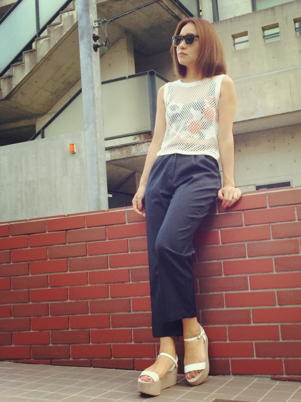 Tops 忘れちゃった💦 Pants BLONDY ReLISH Shoes ZARA とっても暑いこんな日は メッシュトップスにビスチェで涼しげに♪ クロップドパンツは2色買いしたお気に入り♡