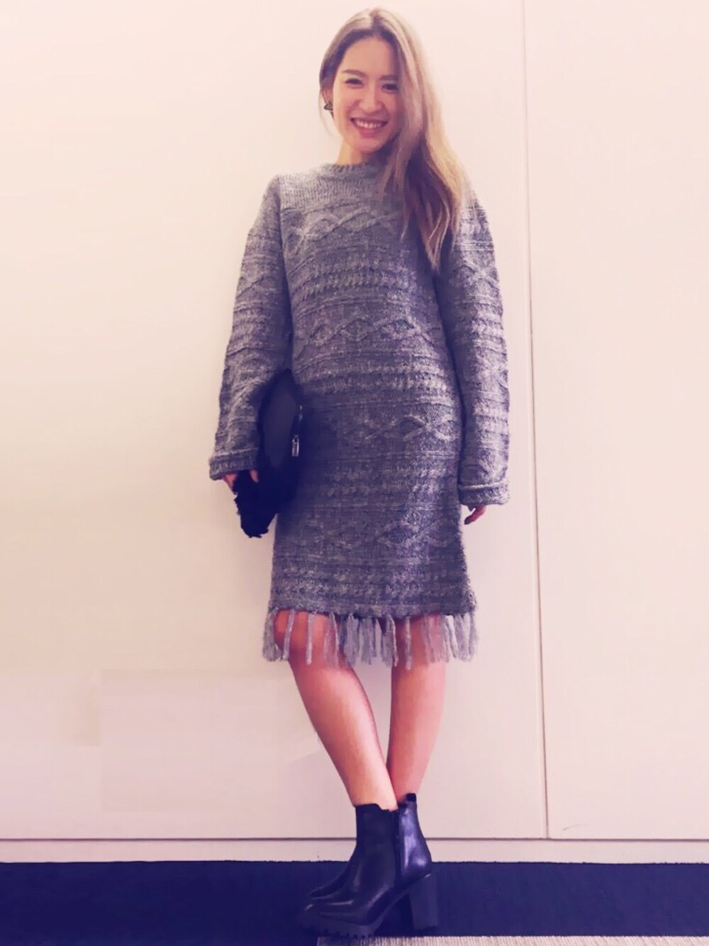donのワンピース「ケーブルフリンジワンピース」を使ったコーディネート