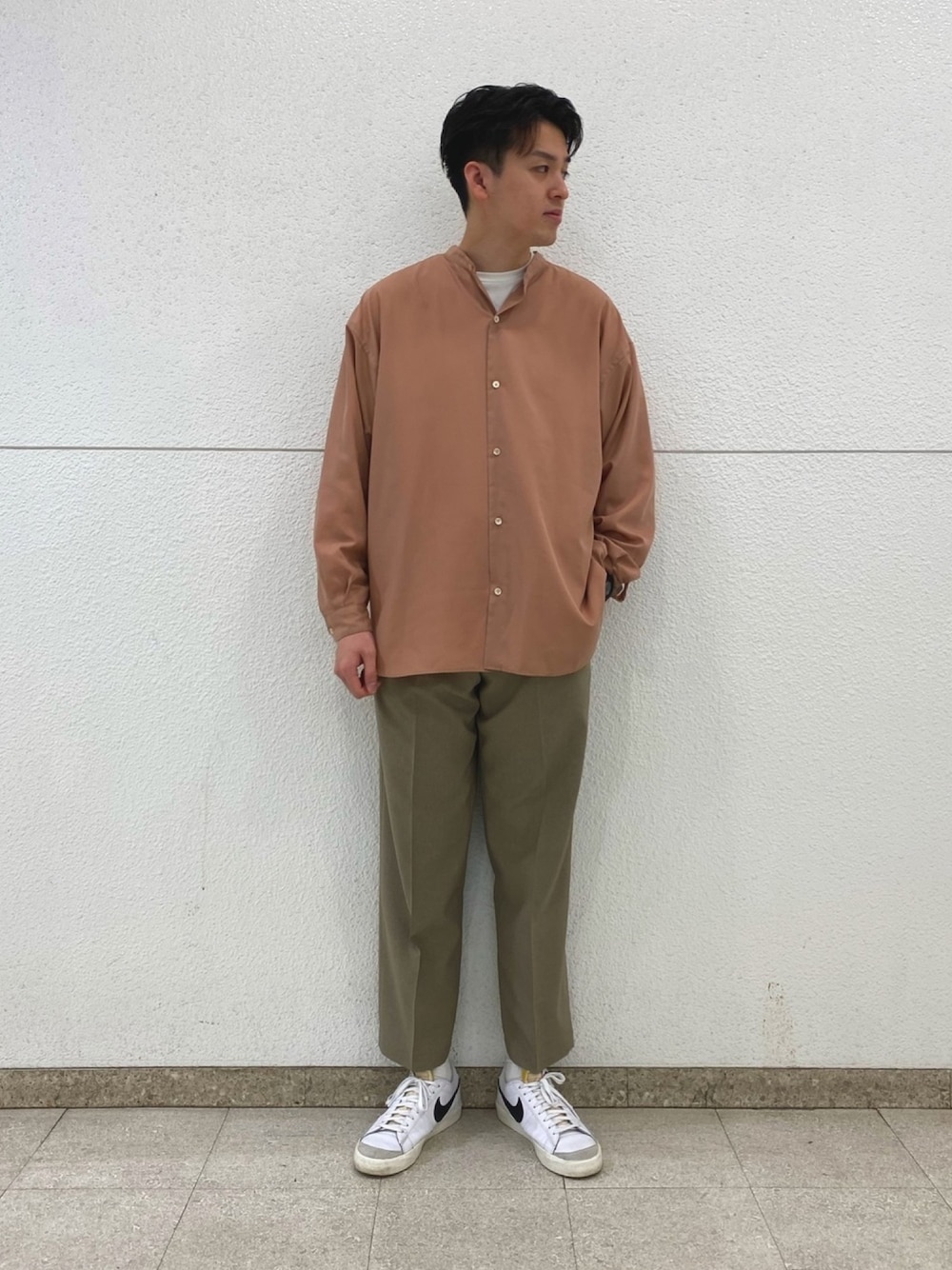 RYO KUROSAWAのシャツ/ブラウス「《21SS》リラックスドレープ レーヨンスエード とろみバンドカラーシャツ/UNISEX」を使ったコーディネート