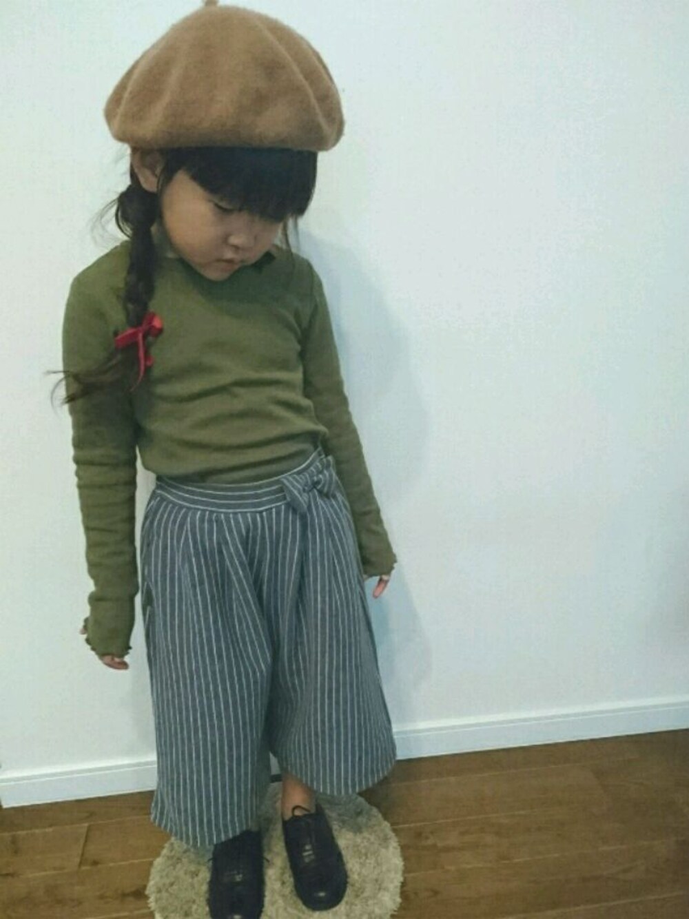 ママがいつもしてる三つ編みリボンをしたいとゆうので合わせたコーデにしてみました\( ¨̮ )/♡おなかぽっこり♡