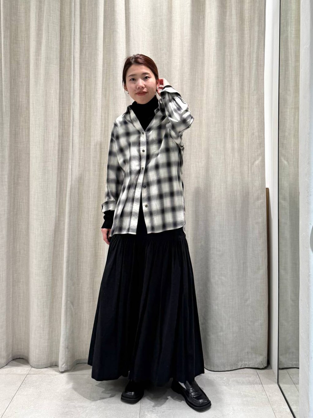 メンズライクなネルシャツも 落ち感のある柔らかい生地だからこそ 女性らしい印象で着られます◎ フェミニンなフレアスカートですが コットンリネン素材だからこそ カジュアルさもあるアイテムです!