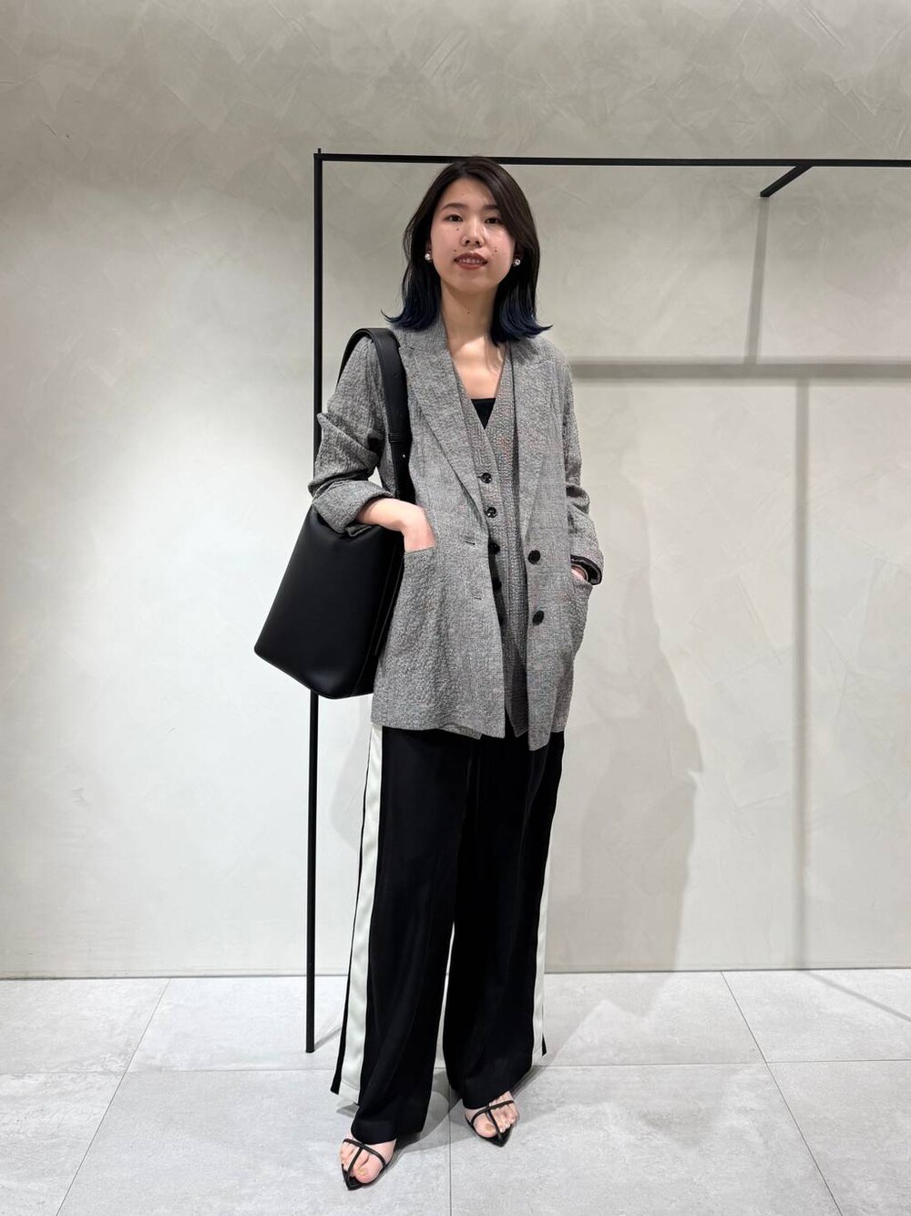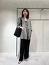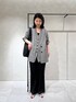 毎年大人気のクレープリネンジャケット! シャツ感覚で羽織れるアイテムです◎ グレンチェックのクールな印象に アセテート素材でサラッと着られる ラインパンツを合わせてみました☺︎