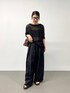 夏のブラックコーデ☺︎ 夏の軽やかな素材感だからこそ あえて黒でクールな印象に✨ 程良く肌見せ、涼しげなアイテムが こなれ感を演出してくれます◎ 後半5枚のスタイリング写真は パンツのウエストをひとつ折って履いています!