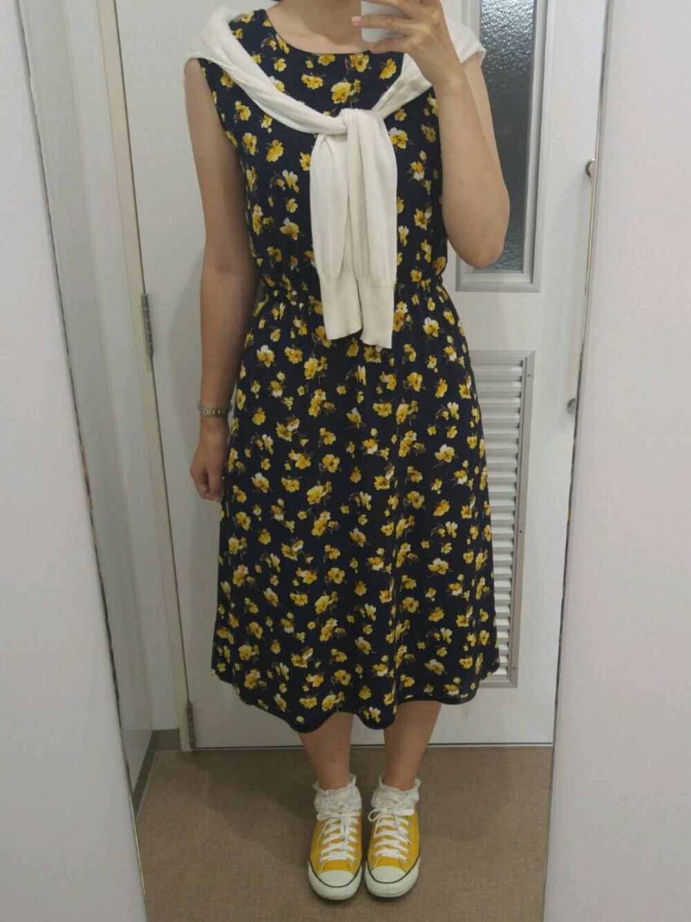 朝ドラの直線裁ちを見て このワンピースを着たくなりました👗✨ 朝ドラとあわせて、 ちょっとレトロな感じに🌼
