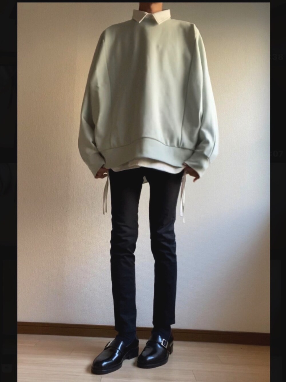 おはようございます! いいね、セーブなどありがとうございます😊 コメントもお気軽に🙆♂️ 今回はスウェット✖️シャツコーデ🔥 スウェットにシャツをレイヤードし黒スキニーでまとめた王道コーデです🙆♂️ このスウェットの色味が絶妙でたまらんです🤤 写真では伝わり辛いですがコード付きシャツなので動くたびにゆらゆら動いて格好いいし何よりシンプルになりすぎない🔥 襟もしっかりしてるのでレイヤードに持ってこいです!