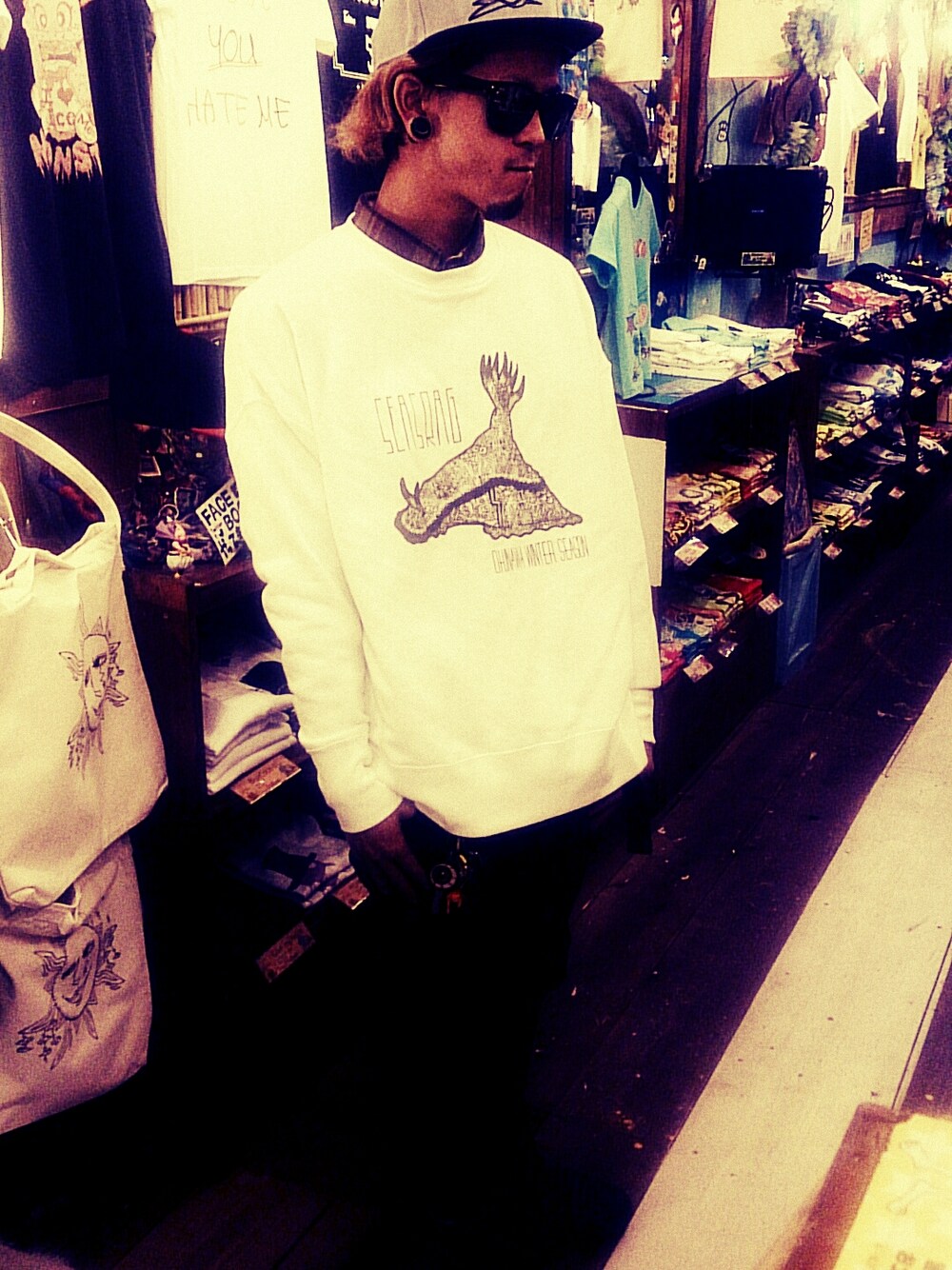 ゼンタングルで描かれたウミウシトレーナーをメインに 上はダボッと下はタイトに
