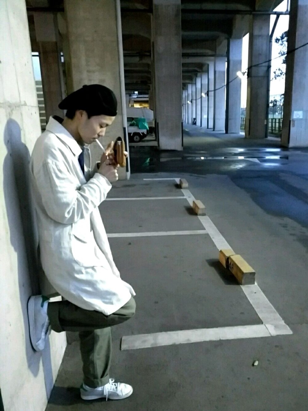 ステンカラーコートの素材としては珍しいリネンがポイント。リラックス感も演出しながらさらっとした感じ。くっしーはいい服をたくさん持ってんなぁ。