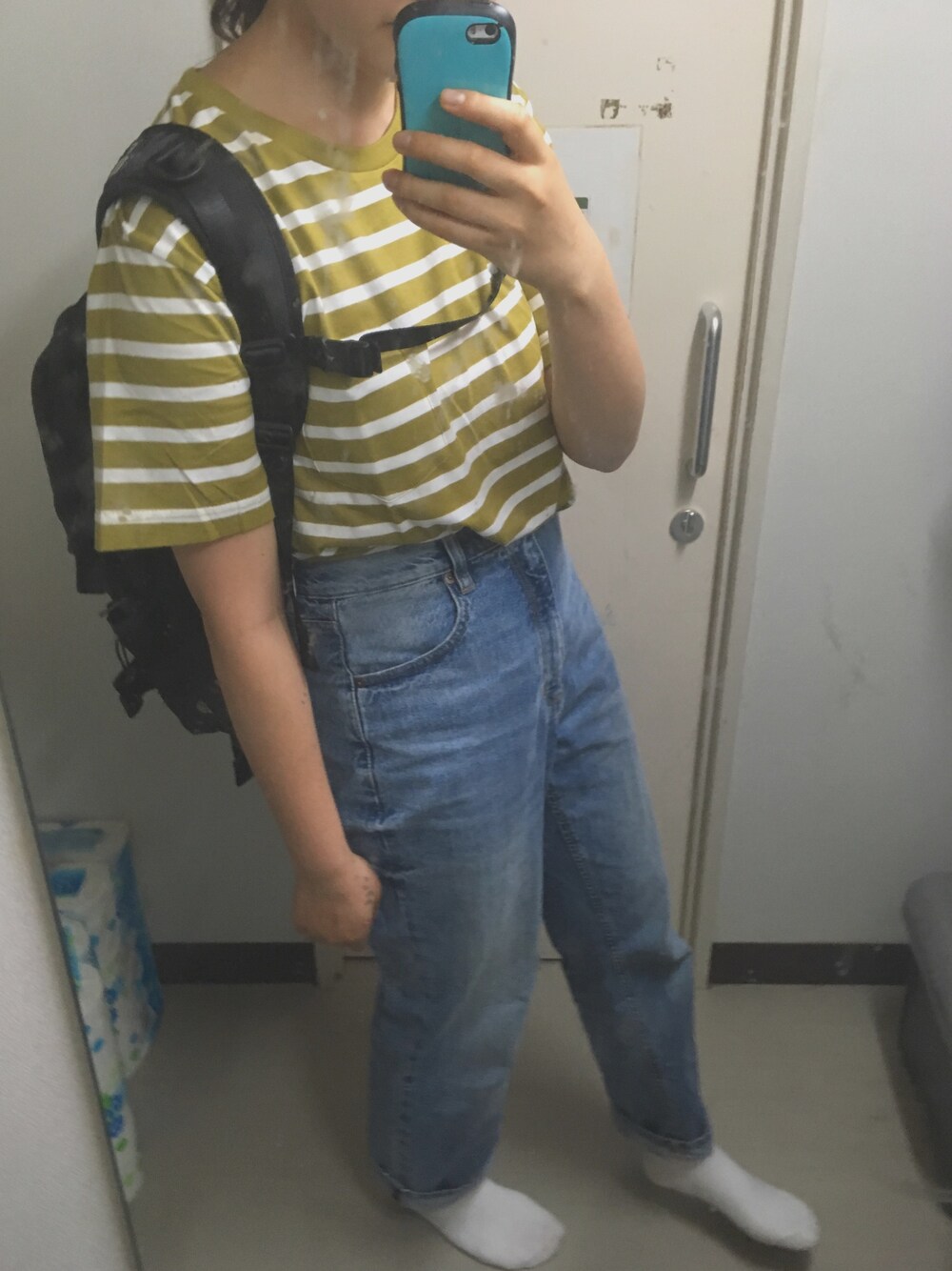 🔷のデニムパンツを使ったコーディネート