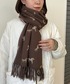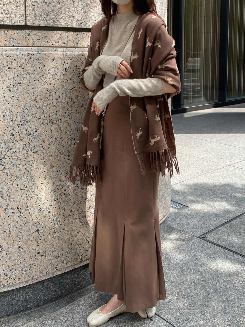 ブラウンのワントーンコーディネート🦦 シンプルなコーデには柄ストールがアクセントになって◯