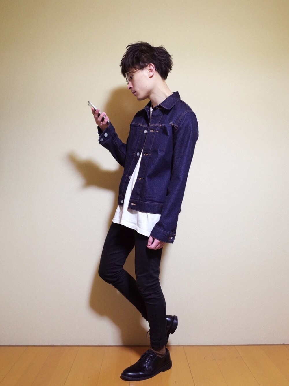 無印良品のデニムジャケット、絶妙な丈の短さが非常に良きです。
