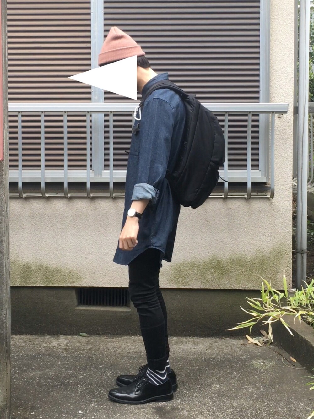 いつも、いいね、お気に入りありがとうございます。 ニット帽×ロングシャツ×スキニーパンツ