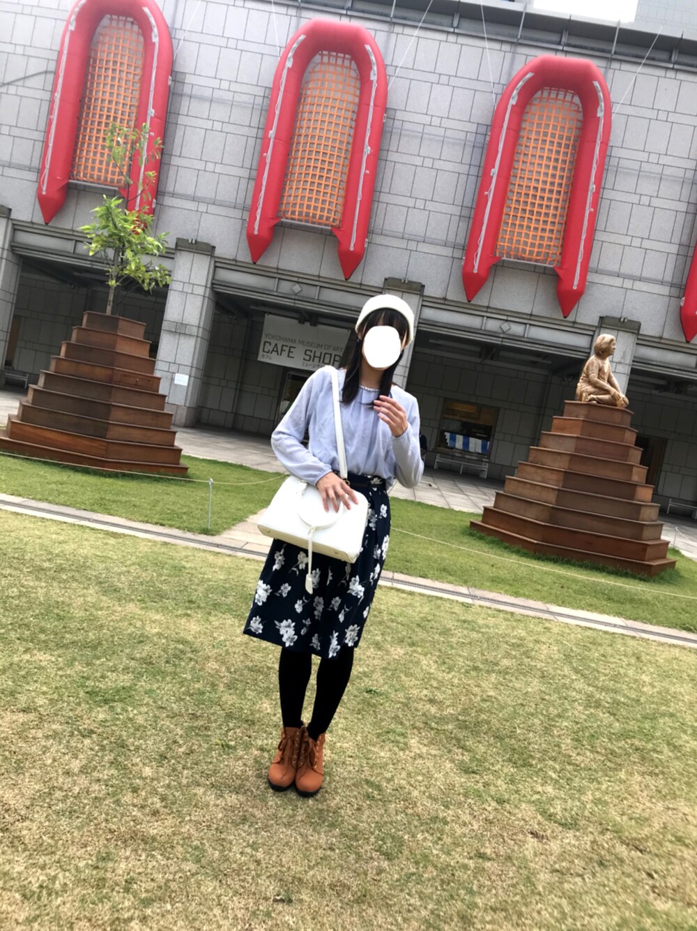 友達とディズニーのお揃いのパーカー買うために横浜に来ました♪♪ 美術館前でケバブ食べたのでそのついでに撮ってみました(*´ω`*) やっぱ私にニット帽は外せません笑