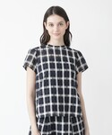 ブルーレーベルらしいトレンチスカートをシアー感のあるチェックブラウスでまとめました。 ハイウエストマークができるのでスタイルアップも叶います。