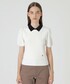 上品な配色衿がポイントのニットプルオーバー。袖は、程よい分量感のパフスリーブで 甘さをプラス。 ストレートパンツと合わせて、ブルーレーベルらしいカジュアルコーデに!