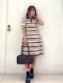 プレッピーなボーダーワンピース。 膝丈でフィットアンドフレアのデザインがブルーレーベルらしい一枚です。 着心地の良いサマーニット仕様で、晩夏から秋にかけて着やすいです。 トレンドのボストンバッグを合わせれば今年らしいスタイリングに。