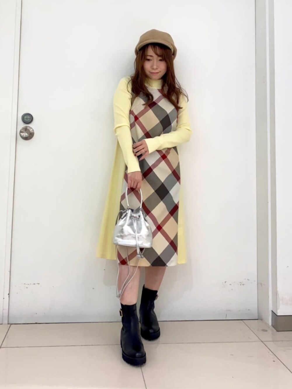クレストブリッジチェックがポイントのワンピースにレザージャケットを合わせました。 ワンピースはチュールの付け替えが可能です。 組み合わせにより異なるテイストでお楽しみいただけます。