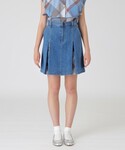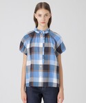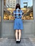 ブルーチェックが映える夏のミニスカートコーディネートです。 ブラウスはフリルとパフスリーブになっているので、シンプルなボトムスと合わせても甘さのあるスタイリングに仕上がります。 デニムミニスカートはタックから覗くクレストブリッジチェックがポイントで、プレッピースタイルが完成するアイテムです。