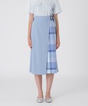 異素材ブラウス×チェック柄ガウチョパンツのコーデ。 バケットハットでカジュアル感をプラスし、全体をブルー系でまとめました。 シンプルなデザインのブラウスは、パンツやスカートなど幅広いアイテムと相性抜群です。 足さばきの良いガウチョパンツは、サイドのチェック切り替えがポイント。 一枚で上品にお召しいただけます。