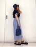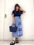 異素材ブラウス×チェック柄ガウチョパンツのコーデ。 バケットハットでカジュアル感をプラスし、全体をブルー系でまとめました。 シンプルなデザインのブラウスは、パンツやスカートなど幅広いアイテムと相性抜群です。 足さばきの良いガウチョパンツは、サイドのチェック切り替えがポイント。 一枚で上品にお召しいただけます。