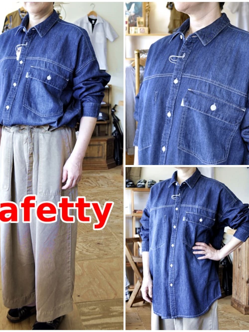 CAFETTY カフェッティ レディース 女性 デニムシャツ オーバーシャツ ビッグサイズ CF7126 6ozライトオンスデニム CF7126 カラー(R5 ダークウォッシュ) サイズM. 着丈73.5cm。 肩幅62.5cm。 バスト 124cm。 メンズのデニムシャツを女性が着たようなオーバービッグサイズのデニムシャツ。 後ろ袖のアームホールにはタックを入れ、ボリューム感をプラス。 ヴィンテージのような加工感と、少し甘めに織り上げることで軽さを出し、柔らかくて、着心地のいいシャツ! 襟のサイズを小さめにし、女性らしい華奢なイメージを残しつつ、メンズライクな雰囲気で着て頂けます。 合わせ方次第で、カジュアルにもキレイめにも使えるデニムシャツは、1枚着や羽織としても使えるので持っていると便利なアイテムです。 パンツやスカートにインしたり、大きめのベルトでアレンジしたりして、色んなコーディネートが楽しめます! ブルーライン ホームページ↓ http://www.bluelinesaga.com/ ブルーライン FBページ↓ https://www.facebook.com/blueline4423/ ブルーライン ブログ↓ http://ameblo.jp/blue4423/ ブルーライン ユーチューブ↓ https://www.youtube.com/blueline4423 ブルーライン ヤフーショッピング↓ https://store.shopping.yahoo.co.jp/blueline/ ブルーライン ショッピング↓ https://bluelineshop.thebase.in/ ブルーライン グーグルマップ(地図)↓ (佐賀県 武雄市 武雄町 昭和85番地) http://urx.mobi/F7lt LINE(ライン) ラインID blueline4423 チャンネル登録お願い致します(ブルーライン YouTube)↓ http://ur2.link/yrhB 〒843-0023 佐賀県 武雄市 武雄町 昭和85番地 BLUELINE(ブルーライン) 11:00~20:00(営業時間) 0954-28-9501 代表 百武 義文 (ひゃくたけ よしふみ) 080 5258 1891 メールアドレス blueline@cameo.plala.or.jp PS( 商品や、店舗情報など 気軽に、ご連絡くださいませ(^^)/ )