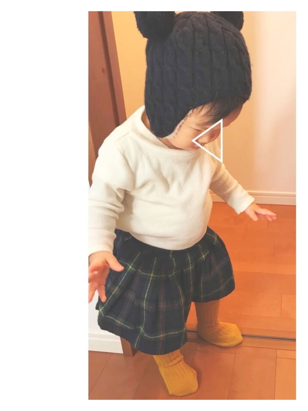 12月スタート☆ なんとなくクリスマスカラーコーデ🎄✨ ぽっこりお腹が気になるし、立っている場所もドアレールの上でなんとも中途半端だけど… 今日はここが気に入っておもちゃを運んでいました♪
