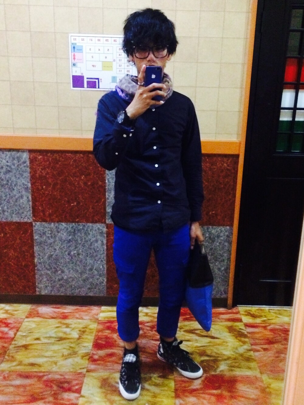 今回はストールを巻いてみました! 青のスキニーパンツ。すきです。