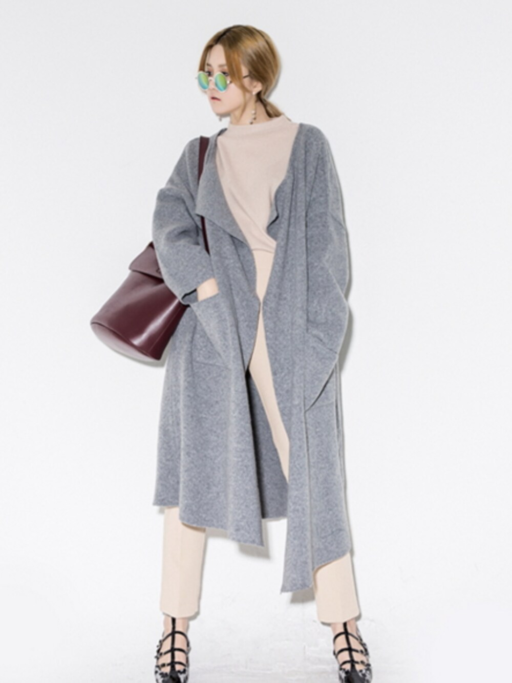 bluepopsのその他アウター「ウール混ルーズフィットガウンコート」を使ったコーディネート