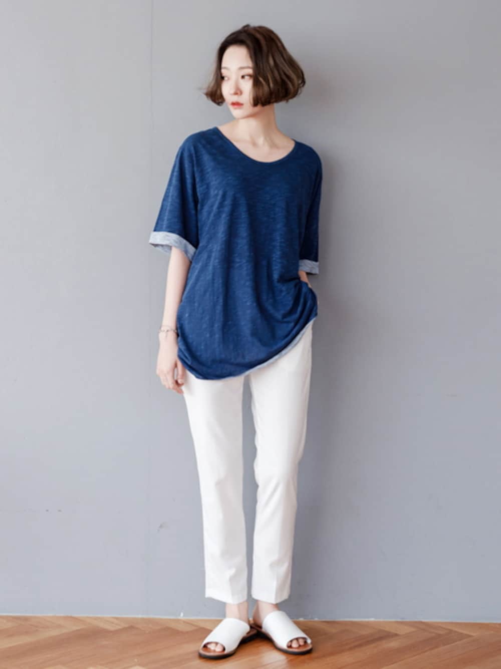 bluepopsのTシャツ/カットソー「コットンスラブロールアップスリーブTEE」を使ったコーディネート