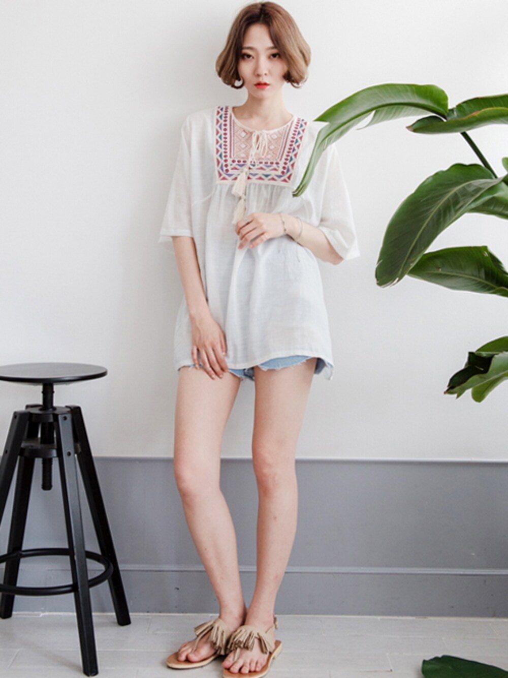bluepopsのTシャツ/カットソー「刺繍デザインボヘミアンブラウス」を使ったコーディネート
