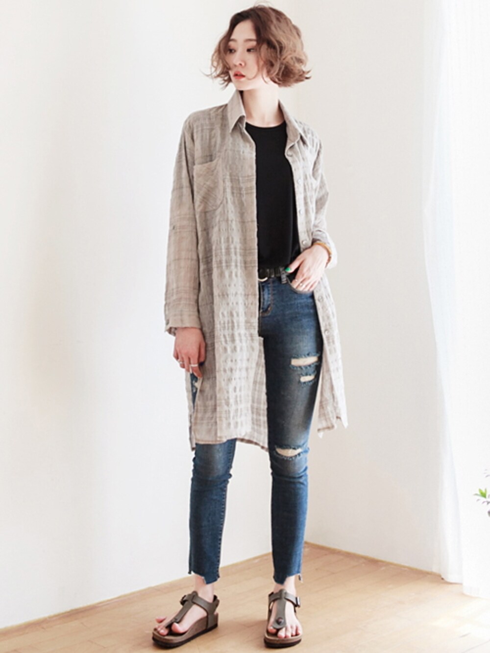 bluepopsのシャツ/ブラウス「コットンチェックナチュラルロングシャツ」を使ったコーディネート