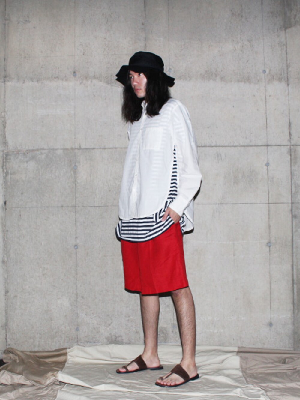脇下がボタンによって開けることのできるユニークなシャツがなんといってもメイン。昨今のトレンドでもあるビッグシルエットのインナーも、脇を開けることで、ごわつかずストレスなしで着れてしまいます。 むしろ、あえてそれを見せるためにビッグシルエットを合わせるのがおすすめ。 鮮やかなレッドのショーツはフレアのように裾に向けて広がっていくシルエットが特徴のアイテム。しかも、この時期に嬉しいリネン100%。下着で歩いているんじゃないかと錯覚してしまうほど着心地最高です(ちょっと盛ってます)。