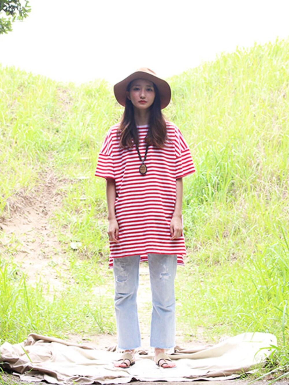 メンズサイズとしても超がつくほどのビッグシルエットの通称「KING」サイズは、レディースが着用するとビッグシルエットを通り越して、Tシャツとワンピースの中間のような絶妙なシルエットになるという、計算し尽くされたサイジングが魅力。まさに万能アイテム。 シルエットによる存在感でトップスが主役なので、ボトムスはベーシックに、かつ季節感のあるアイスウォッシュの色合いがポイントのユーズドデニムで。(デニムはモデル私物です) 上下のサイズのアンバランス感。シャレオツです。 ★オフィシャルホームページにて夏のSALE開催中★