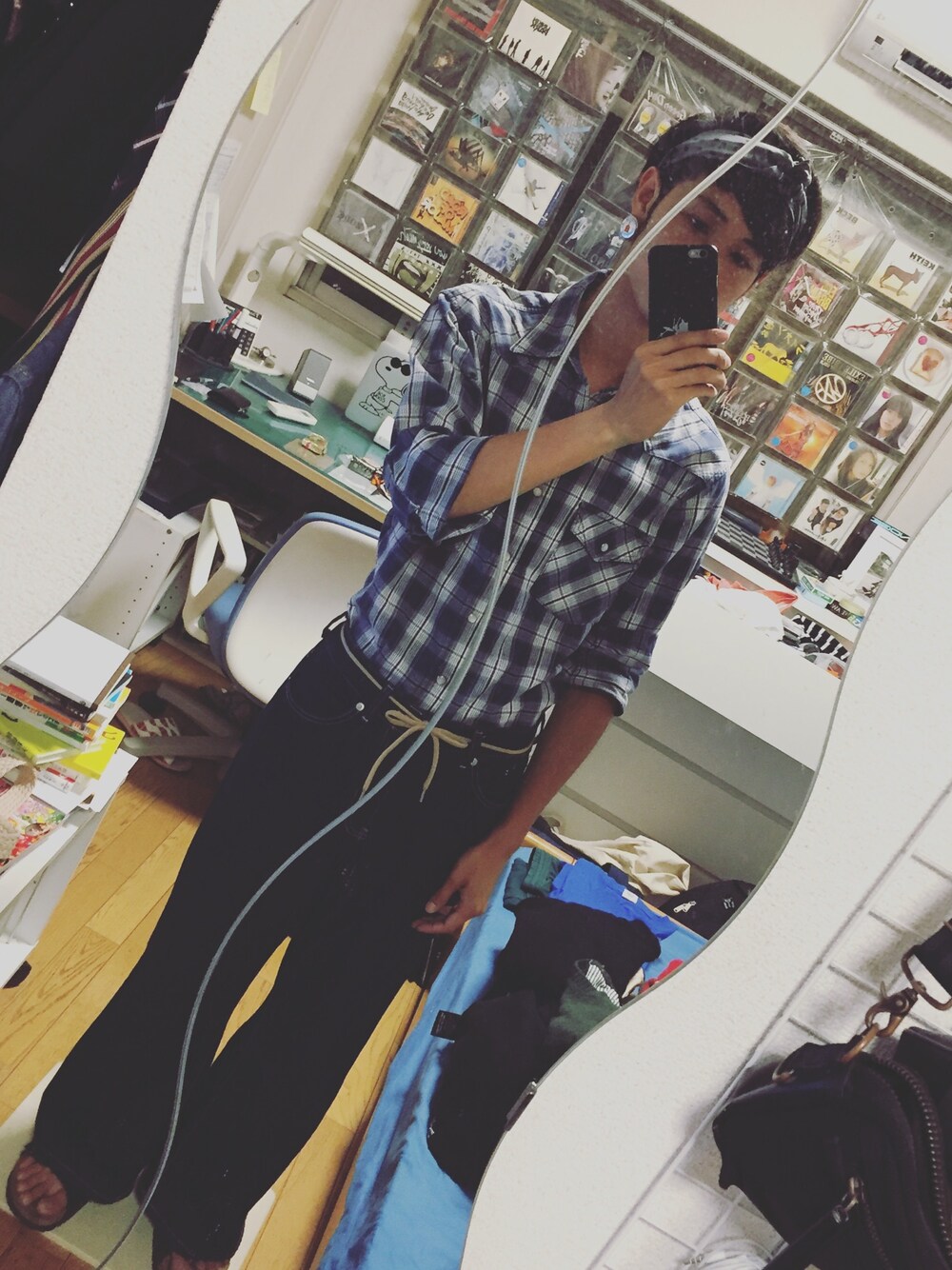 ギンガムシャツに 夏らしい色のデニムで決めてみました。 あとはポイントにバンダナをつけて 少し変わった雰囲気にしました。