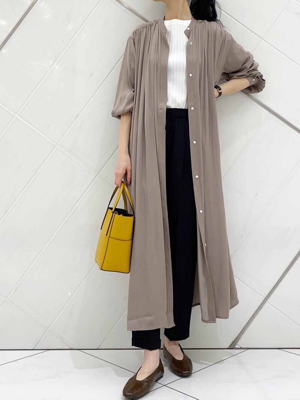 AI.Uのワンピース「とろみサテンギャザーワンピース」を使ったコーディネート
